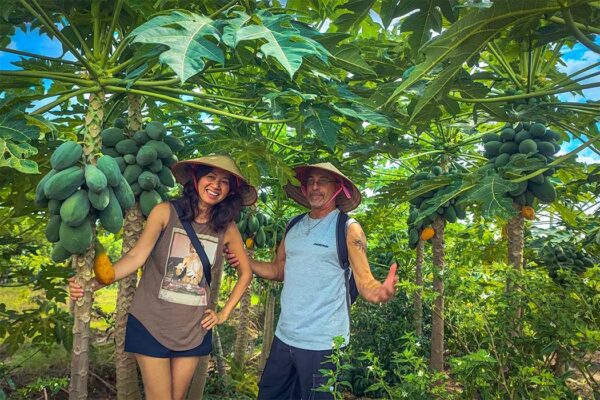Visit one of the local Orchard: harvesting fruits and fishing in natural ponds by hands and traditional fishing equipment, (take time to change clothes before and after fishing); Making traditional pancake (banh xeo)